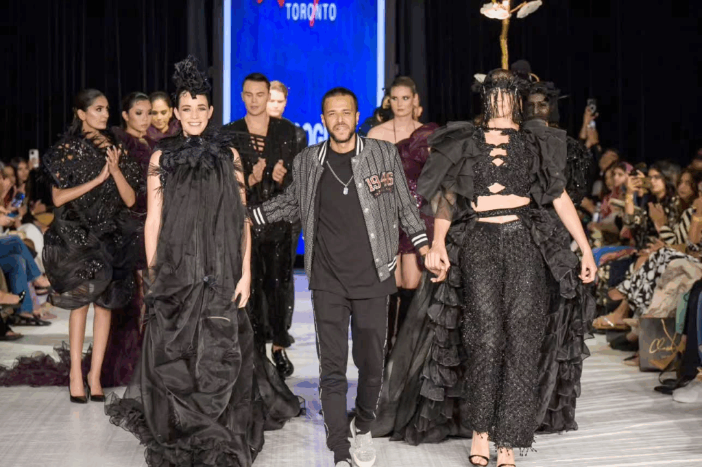 Though shaped by international exposure, Hassan’s creative vision remains deeply rooted in Pakistani culture. He has presented internationally — including at Lifestyle Toronto — showcasing remarkable adaptability. At one event, when his designs were delayed in customs, he reconstructed an entirely new presentation using leftover materials from a previous line. The result still earned standing ovations.