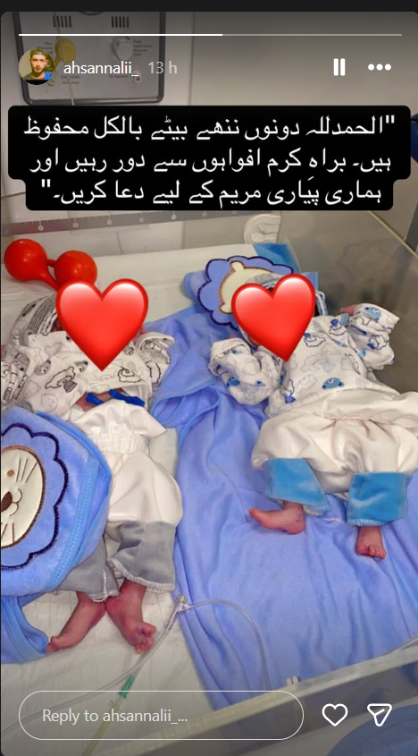 Days after her death, there was misinformation on the state of her newborns. In order to clear up the situation, Ahsan Ali confirmed that Pyari Maryam gave birth to twin boys, and the babies are currently no longer at risk. He assured fans that the children are okay and he did not want them to believe the fake news they saw on the internet.