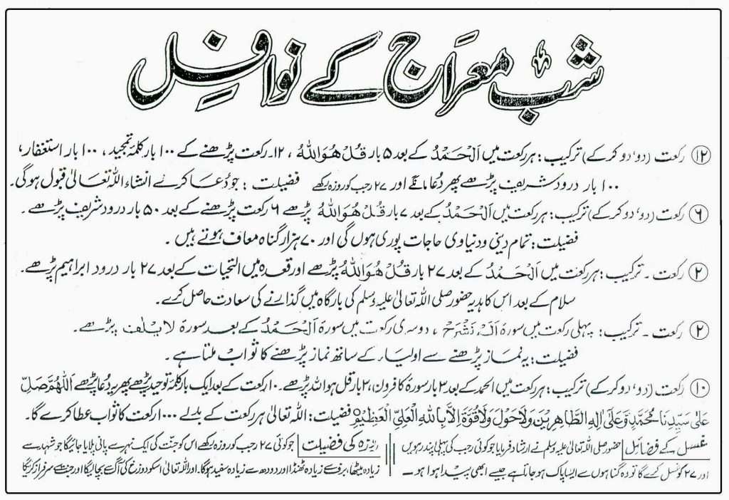 Shab e Meraj Nafil Namaz in Urdu