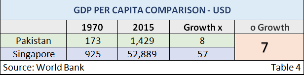 Also, interesting to note is the data extracted from World Bank (Table 4), wherein the GDP per capita of the two countries also grew with the same ratio during the same period, i.e., 7:1 in favor of Singapore.