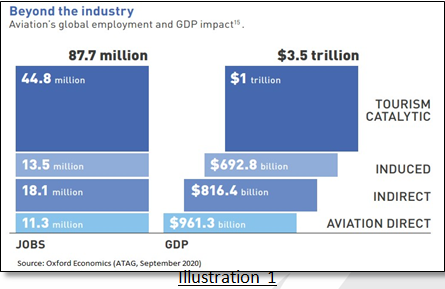 Globally, aviation?s contribution to employment and GDP as per Oxford Economics? prognosis (post COVID-19) by 2024 is demonstrated by the illustration below.