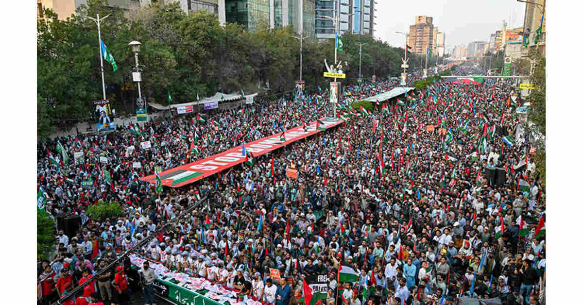 The Jamaat-e-Islami protest today coincided with the Global Day of Protest marking the second anniversary of Hamas’ Al-Aqsa Storm operation. Demonstrations across Pakistan held to reaffirm solidarity with Gaza and to oppose what protestors called the ongoing humanitarian crisis in Palestine.