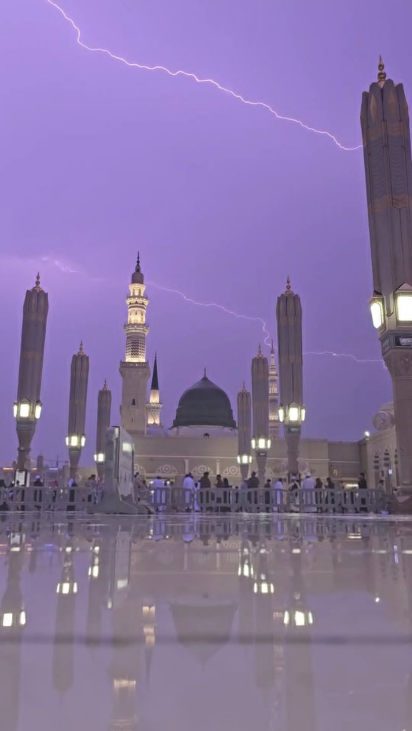 Sajdah of gratitude was done in Masjid an-Nabawi by thousands of visitors. The rain that fell in Madinah was a blessing to the people. Numerous photos of the Green Dome in rain were taken. The precipitation was a unique and unforgettable spiritual encounter to worshippers.